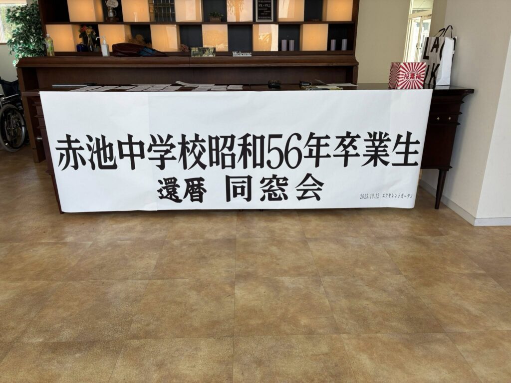 昼からは、私の母校赤池中学校の還暦同窓会。99名の同窓生のうち44名が集まり、大変楽しい時間を過ごしました。