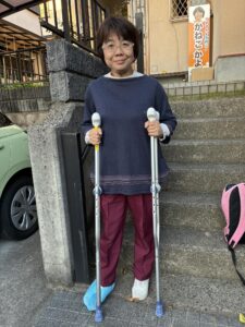昨日、人生初の松葉杖を使ったためか、今日は脇下の筋肉痛に悩まされました。今日は、我が子が使っていたキャスター付き椅子を車イス代わりで家の中を移動してます。これは同じ境遇を経験した方からの知恵です。