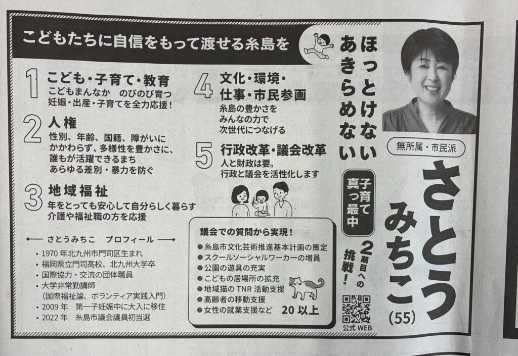 【1/29 糸島市議会議員候補さとうみちこさん応援】