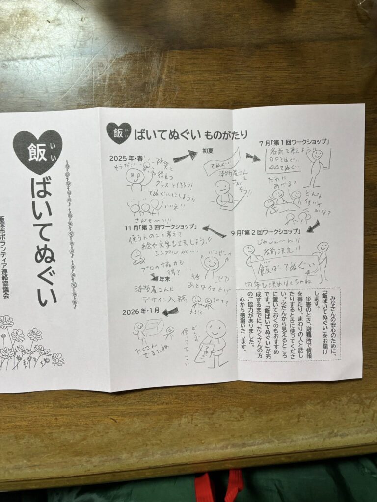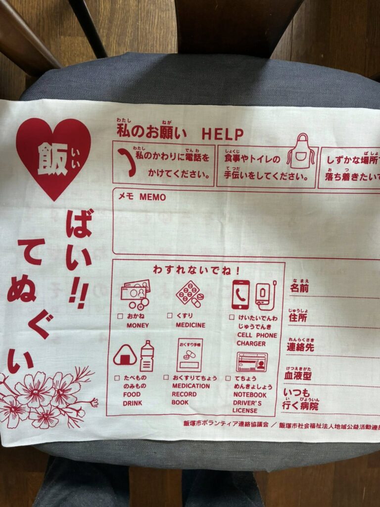 2026年2月17日 / 最終更新日 : 2026年2月18日 金子 加代 障害がある人と共に 【飯塚で、防災手拭いできました!】 飯塚で、防災手拭いできました!「飯(いい)ばいてぬぐい」そのものがたりも素敵です。FacebookXBlueskyHatenaCopy
